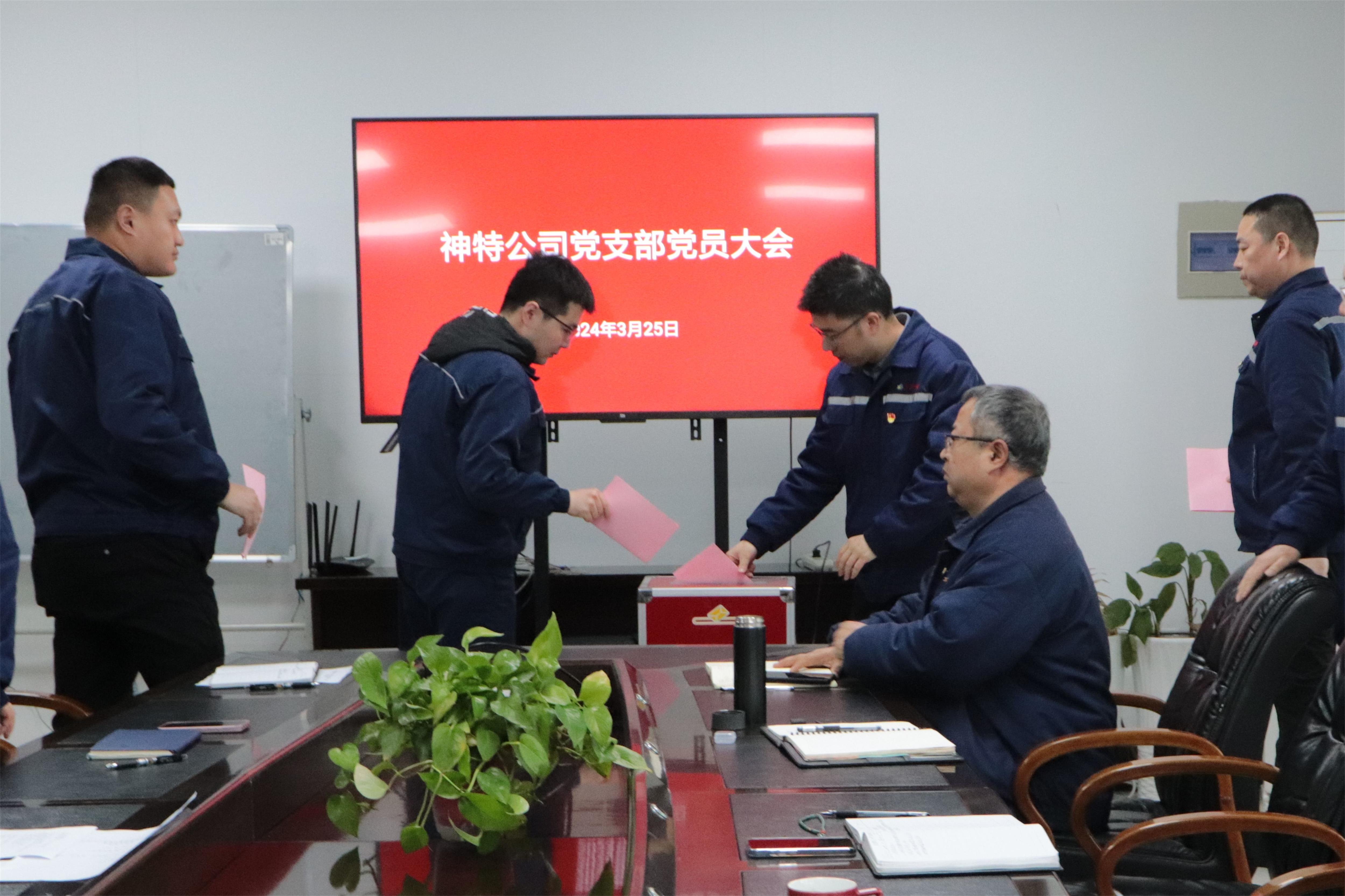 會上,公司黨支部書記、董事長、總經理嚴成作題為《黨建引領聚合力 奮楫篤行開新篇 為公司高質量發展提供政治保證》黨建工作報告,回顧總結近三年的黨建工作,研究部署當前和今后三年的奮斗目標和主要任務,要求全體黨員堅持以習近平新時代中國特色社會主義思想為指導,深入踐行新時代黨的建設總要求和新時代黨的組織路線,團結奮進,務實爭先,為公司發展提供堅強保證;加強黨的領導,把方向、管大局、保落實;嚴明紀律規矩,實現思想建黨和制度治黨;健全組織制度,加強和規范黨內政治生活;強化兩個責任,推進作風建設和反腐敗工作;抓基層強基礎,發揮黨支部戰斗堡壘作用,為神特公司的經濟發展和事業進步作出新的更大貢獻。