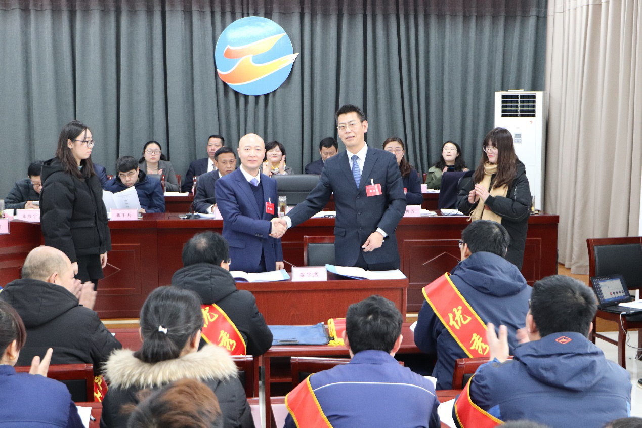 會議選舉產生了新一屆工會委員會、工會經費審查委員會、女職工委員會及職代會三個專門委員會。與會人員聽取并審議了總經理《工作報告》、工會《工作報告》及《2018年預算指標完成情況及2019年預算安排的意見》、《2019年勞動競賽實施意見》等有關方案。會上,簽訂了《2019年度集體合同》,并對2018年度3個先進部室、3個示范班組及15名優秀員工進行了表彰。